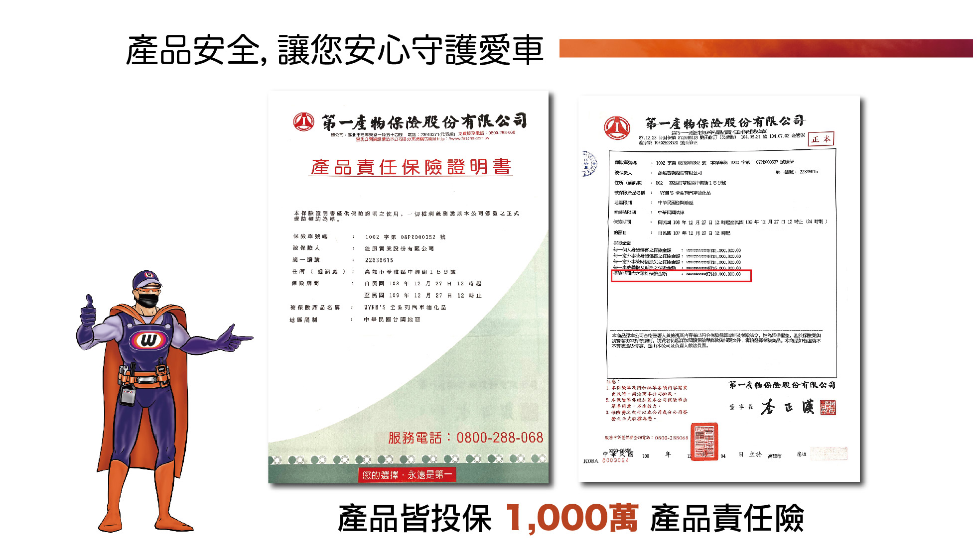 產品安全是我們的責任,所以我們皆有投保1000萬產品責任險,讓消費者用得安心。